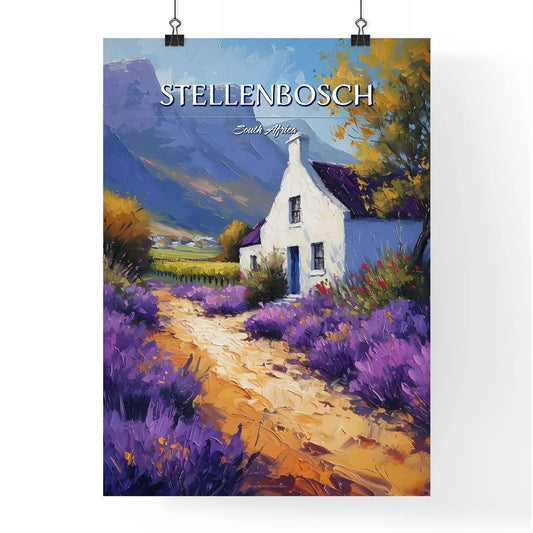 Stellenbosch, South Africa - Art print of a painting of a house with purple flowers