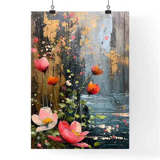 A Poster of onyx white lucite pink canvas wall art - A Painting Of Flowers On A Wood Surface