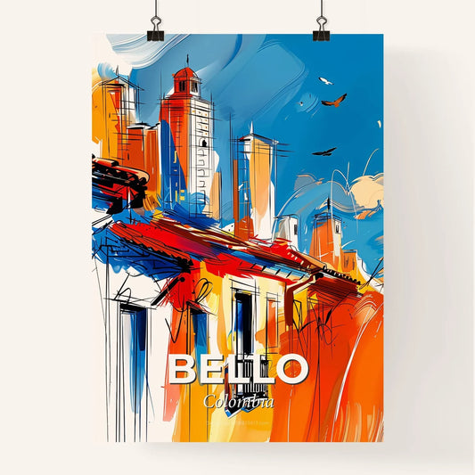 Vibrant Bello, Colombia - A Painting Of Buildings And Birds