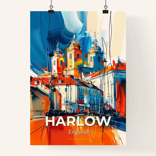 Vibrant Harlow, England - A Painting Of A Skyline With A Colorful Building
