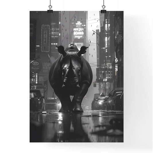 Rhinoceros in City, Surreal Painting, Black and White, Architecture, Urban Landscape, Ambient Occlusion, HD, Water