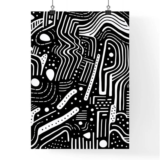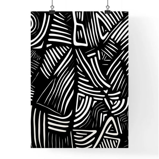 A Poster of linocut line art of a zebras stripes - A Black And White Pattern
