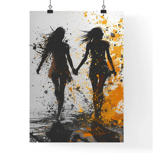A Poster of Hand drawn black and white fashion sketch - Two Women Holding Hands In Water