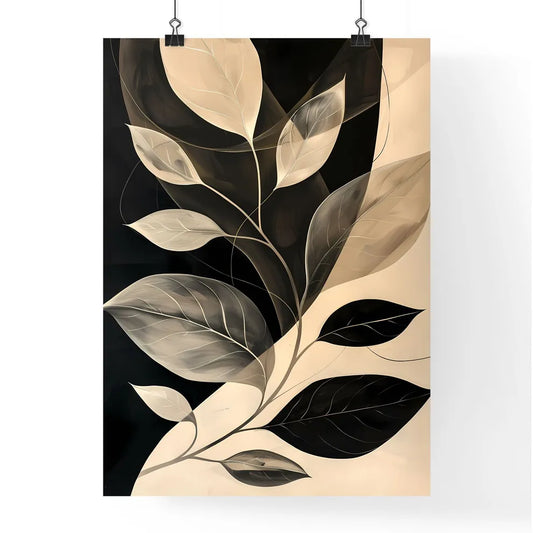 Abstract Black and White Leafy Plant Painting: Holotone Print With Bold Stencil in Organic Wavy Lines