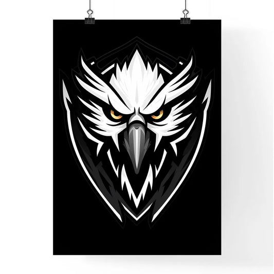 Abstract Black and White Falcon Mascot Design with Vibrant Yellow Eyes