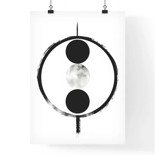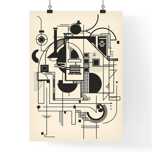 Abstract Collage of Circles and Line: Black and White Bauhaus Art Style, Clean Ink Painting on Parchment, Graphic Shading, Stencil, Flat Color