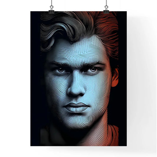 A Poster of line drawing of handsome masculine face - A Man With A Black And White Face