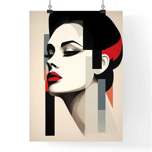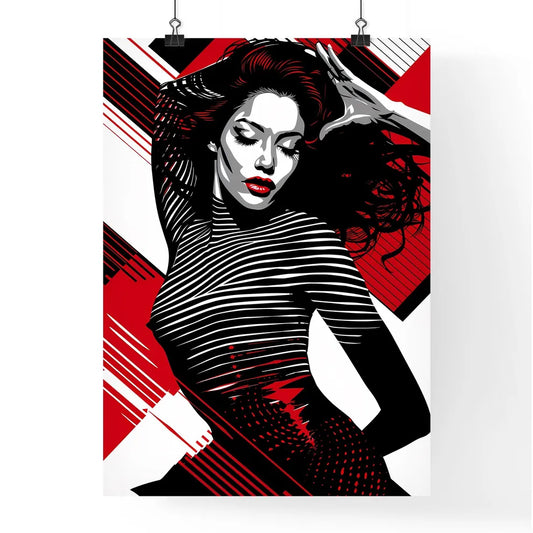 Expressionist - A Woman's Face With Red Lips And Black And White Stripes