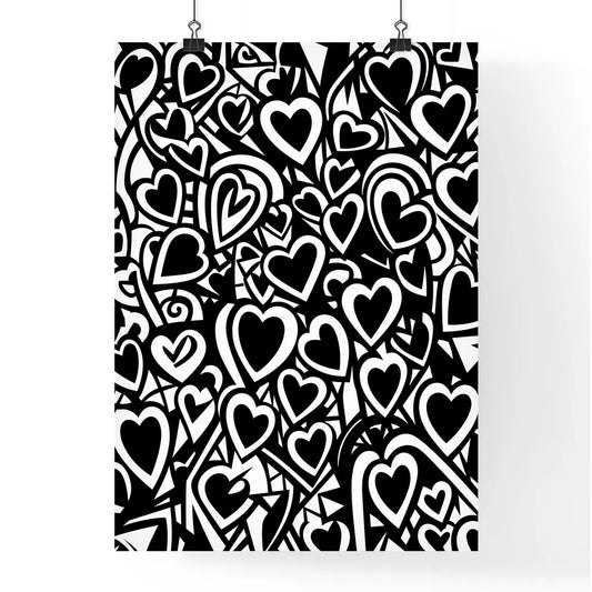 Graffiti Black And White Love Pattern Doodle - A Black And White Pattern Of Hearts