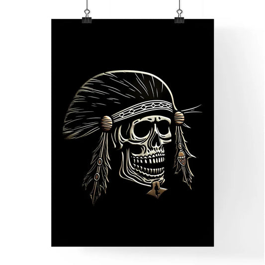 Detailed Black and White Pirate Skull Logo with Ornate Feathers