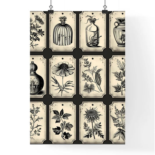 Collection of vintage Halloween plant tag illustrations with black and white tones on cream backgrounds for easy cutout or printing details