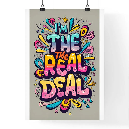 I Am The Real Deal - A Colorful Text On A Grey Background Art Print