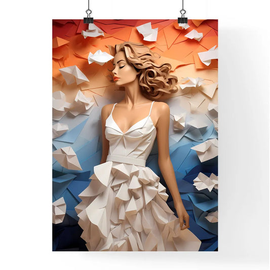 Woman In A White Dress Lying On A Colorful Background Art Print