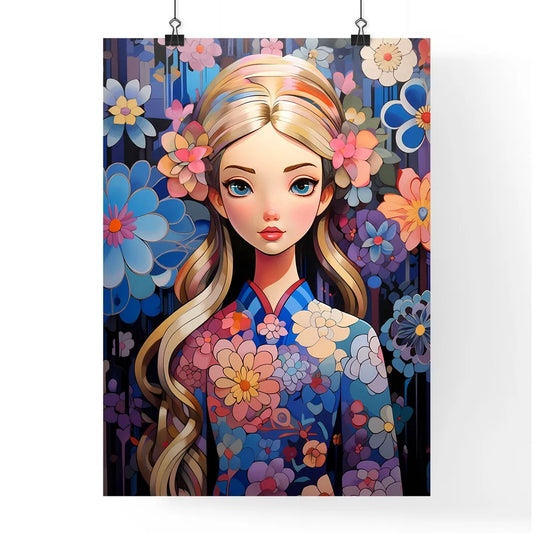 Cartoon Of A Woman With Flowers In Her Hair Art Print