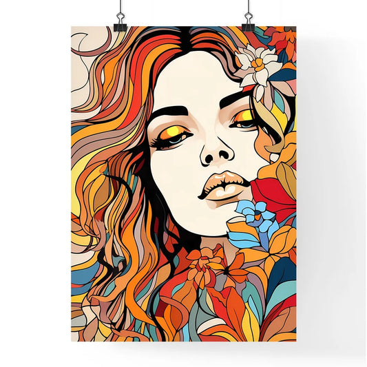Woman With Colorful Hair And Flowers Art Print
