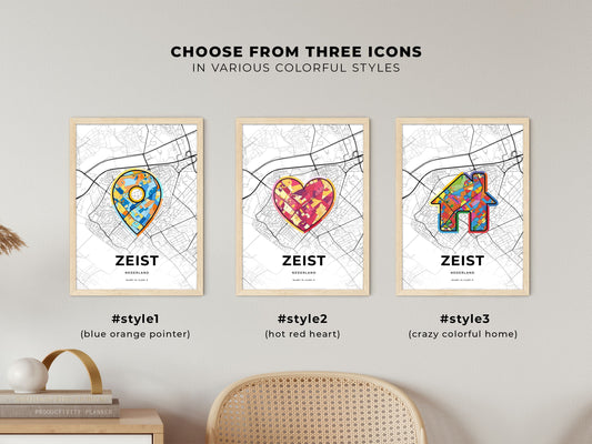 Zevenaar Netherlands, minimal art map with a colorful icon