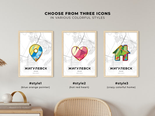 Zhigulyovsk Russia, minimal art map with a colorful icon