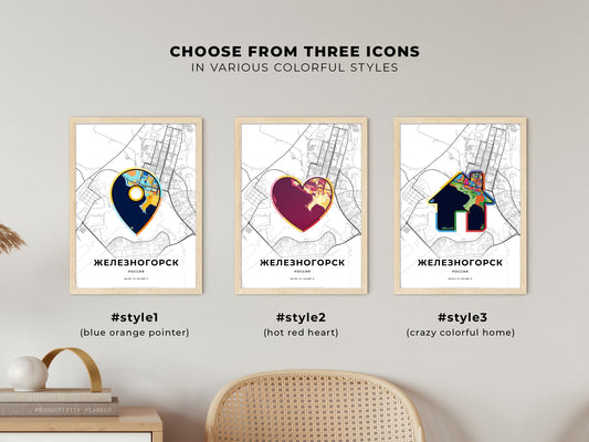 Zheleznogorsk Russia, minimal art map with a colorful icon