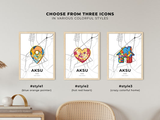 Aktau Kazakhstan, minimal art map with a colorful icon
