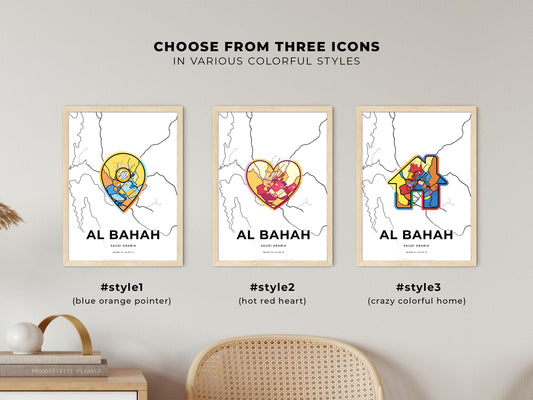 Al Bahah Saudi Arabia, minimal art map with a colorful icon
