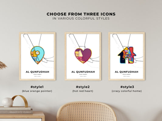 Al Qunfudhah Saudi Arabia, minimal art map with a colorful icon