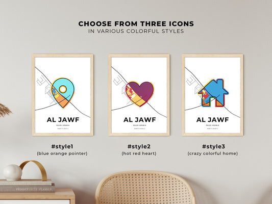 Al Jawf Saudi Arabia, minimal art map with a colorful icon