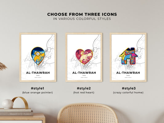 Al-Thawrah Syria, minimal art map with a colorful icon