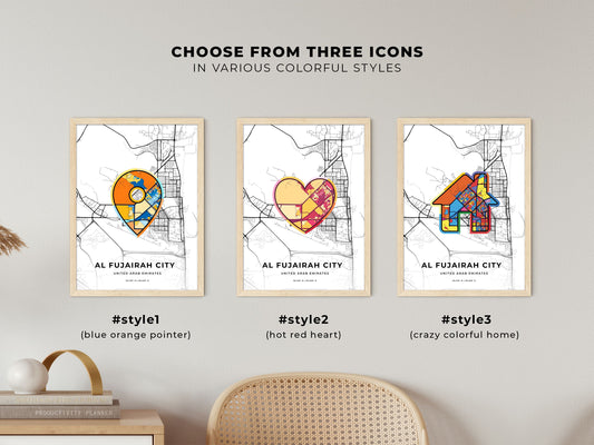 Al Fujairah City United Arab Emirates, minimal art map with a colorful icon