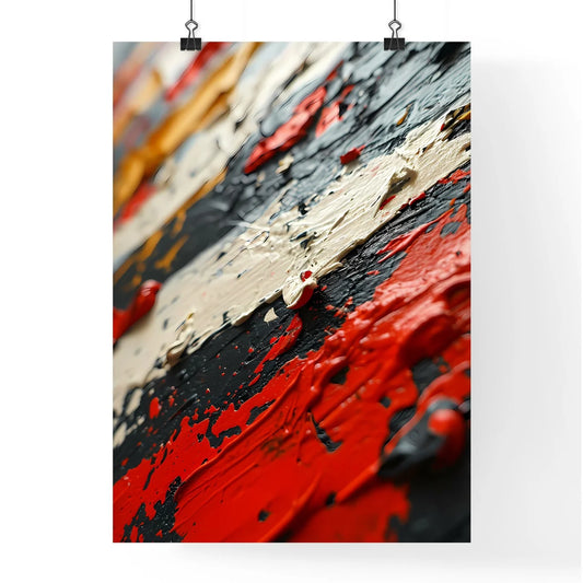A Poster of a black canvas with white and red stripes - A Painting Of Red And Black And White Stripes