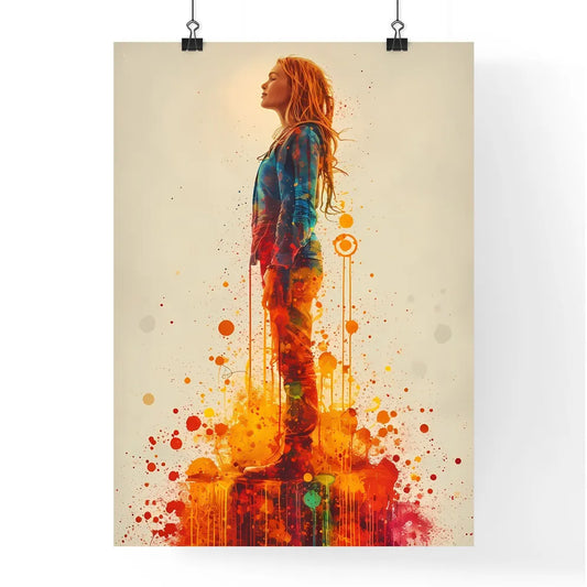 A standing woman, listining a music illustrations vector design - Art print of a woman standing on a cube