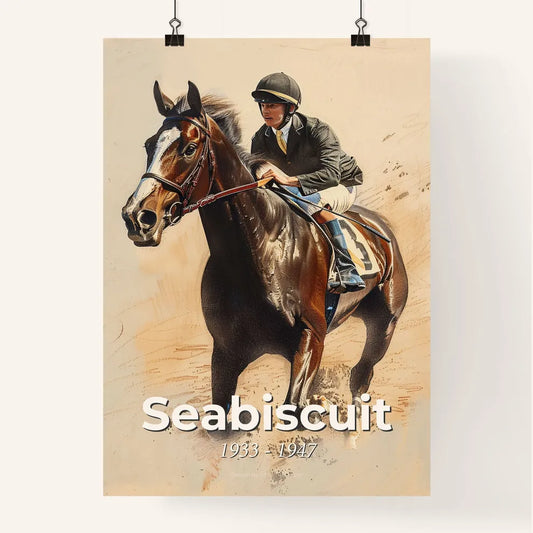 Seabiscuit: Icon of Resilience in Racing - Captivating Contemporary Art Print Celebrating Hope & Victory on Bright Beige