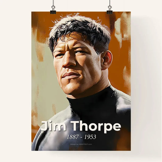 Portrait of Jim Thorpe, 1887 - 1953. Impressionistic painting of a man in a black shirt.