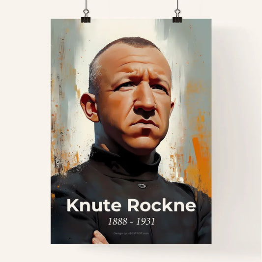 Portrait of Knute Rockne, 1888 - 1931. Impressionistic painting of a man with his arms crossed.