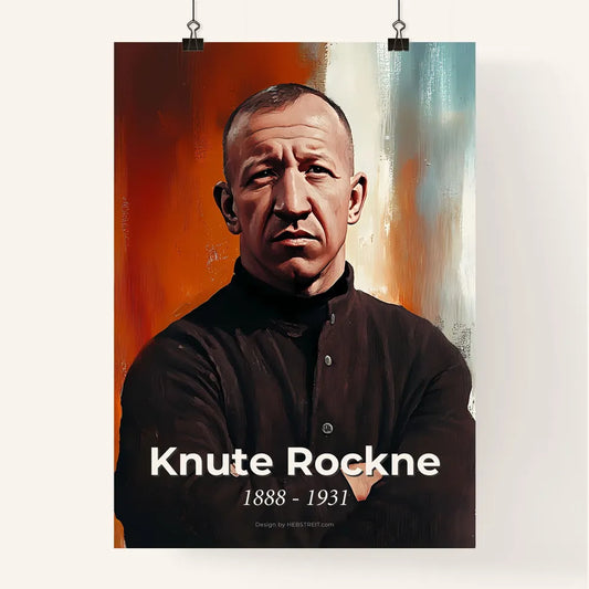 Portrait of Knute Rockne, 1888 - 1931. Impressionistic painting of a man in a black shirt.