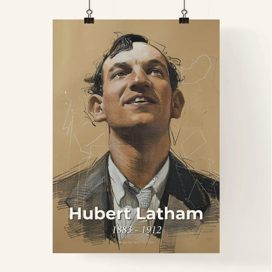 Hubert Latham: A Dynamic tribute to the Pioneer Aviator - Stunning Contemporary Art Print on Beige with Elegant Hatching & Highlights