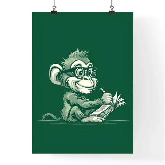 Little Ape T-Shirt Logo: Cartoon Monkey in Glasses Writing on Book, Gadgetpunk, Future Tech, Animated Gifs, Creepypasta, Text-Based, Green Background, Art Focus, New York School, Chromatic