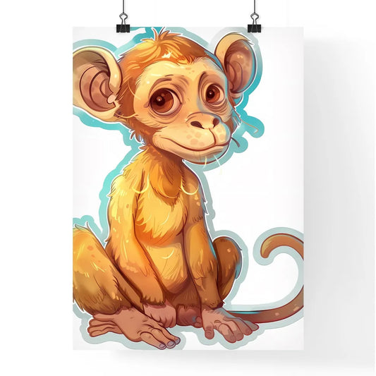 Mischievous Monkey in Vibrant Art: Humorous Animal Sticker with Simple Illustration Style, Emphasizing Expression and Pose