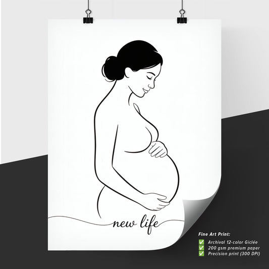 Elegant Line Art of a Pregnant Woman Embracing New Life and Motherhood
