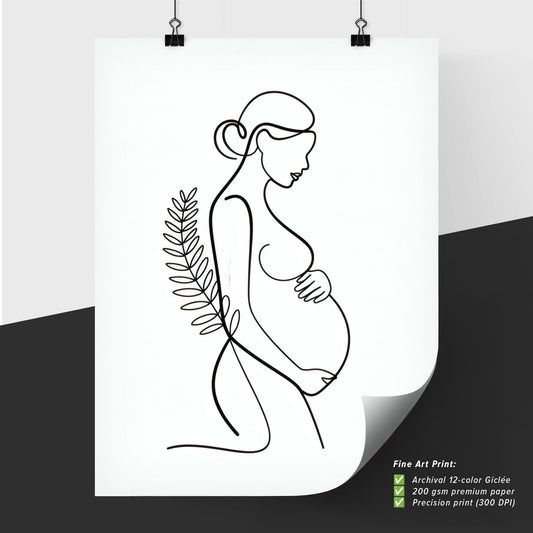 Minimalist Line Art of a Pregnant Woman Embracing Motherhood and Anticipation