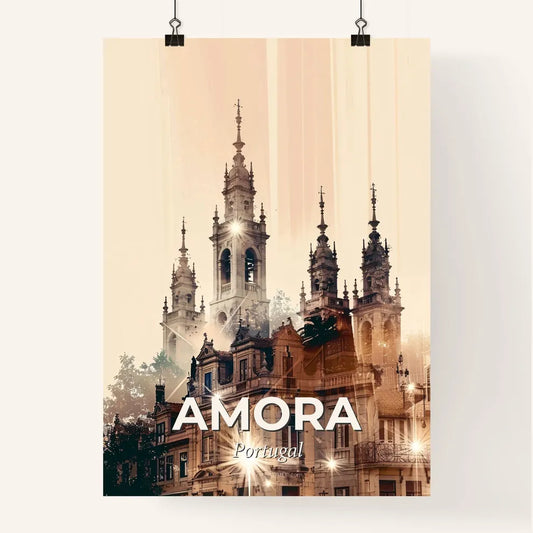 Amora Skyline Double Exposure Art Poster - A building with a tower and a light shining through it