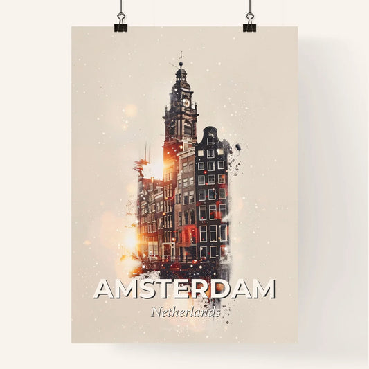 Amsterdam Lights: Local Architecture Art Poster - A building with a tower
