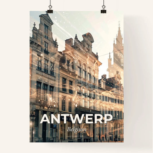 Antwerp Skyline: Beige Double Exposure Poster Art - A building with a city skyline