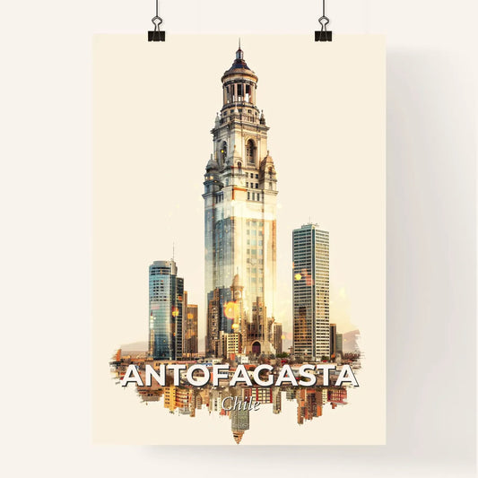 Antofagasta Skyline Icons Glow Composite Poster - A large building with a tower