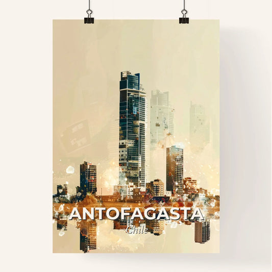 Antofagasta Skyline Art: City Icons on Beige - A building with many windows
