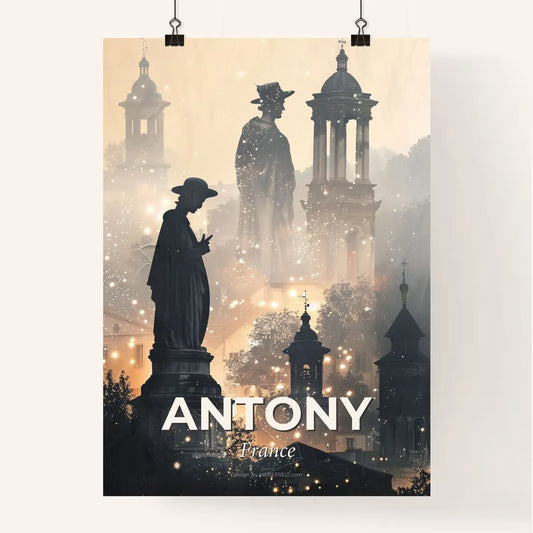 Antony Skyline Double Exposure Cityscape Art Poster - A group of statues in a city