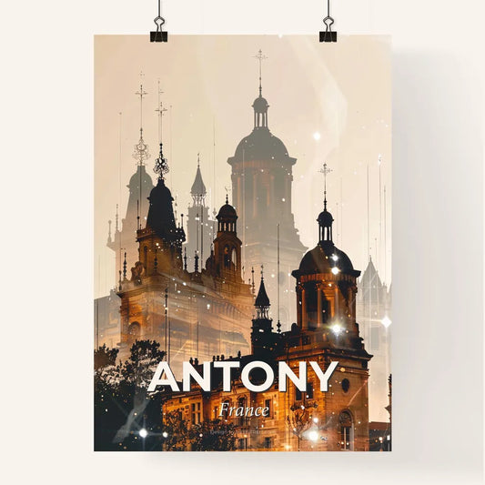 Antony: City Silhouette in Double Exposure Art - A building with towers and spires