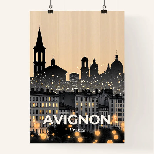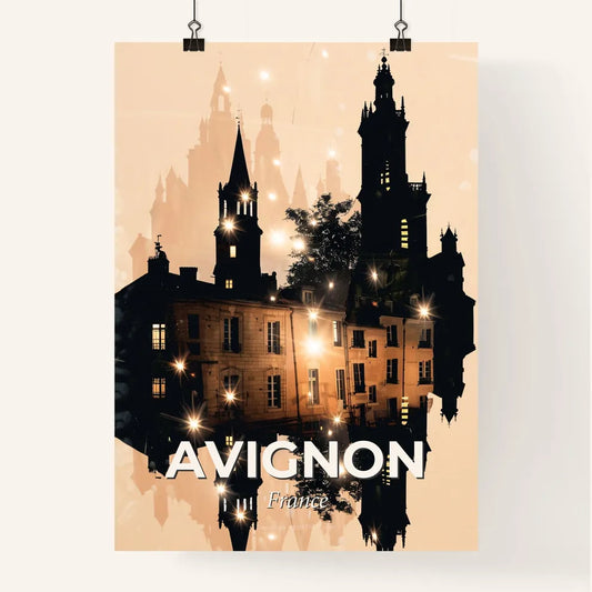 Avignon Skyline Double Exposure Art Poster - A building with towers and lights