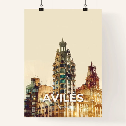 Avilés City Art Skyline Composite Poster Design - A building with a tower