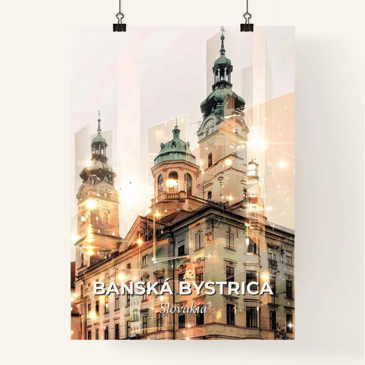 Banska Bystrica Cityscape Composite Skyline Art Poster - A building with towers and lights