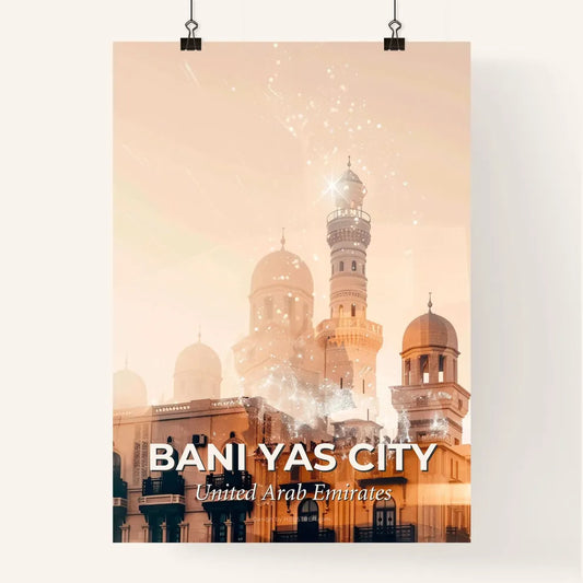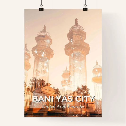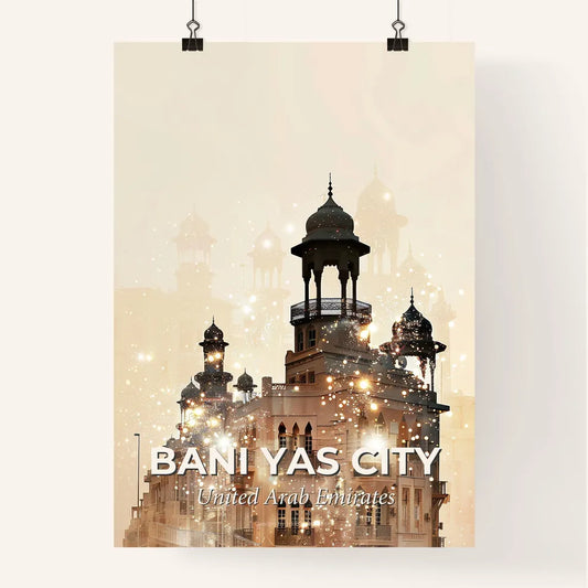 Bani Yas City Poster Art: Shimmering Skyline - A building with towers and a tower